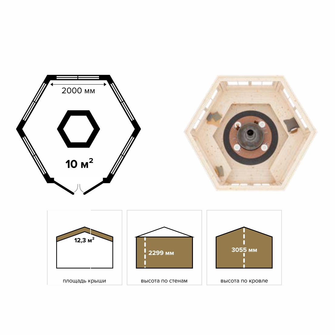 Беседка 10 шестигранная (Стандарт) – брус 44 мм
