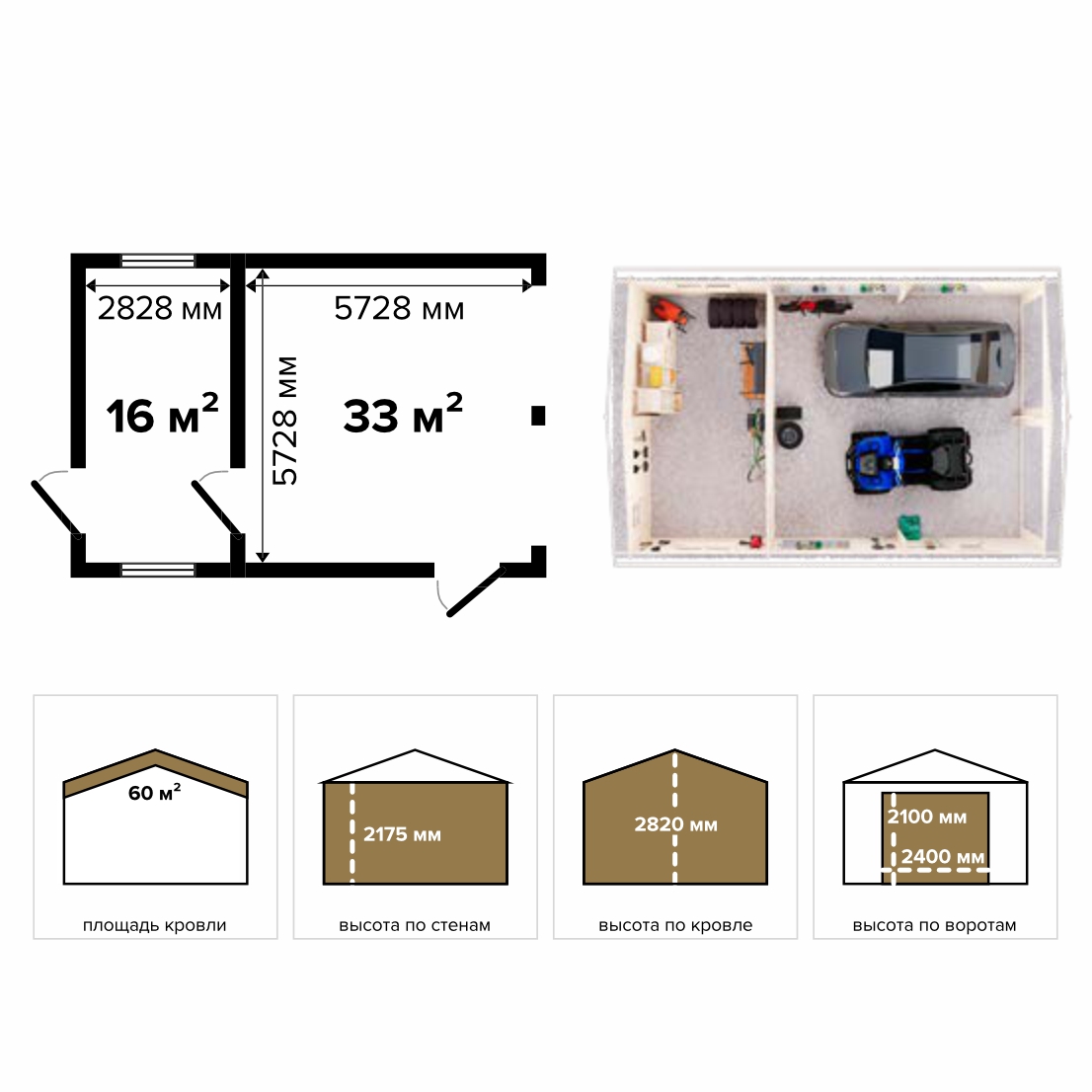 Гараж 49 (Стандарт) - брус 44 мм