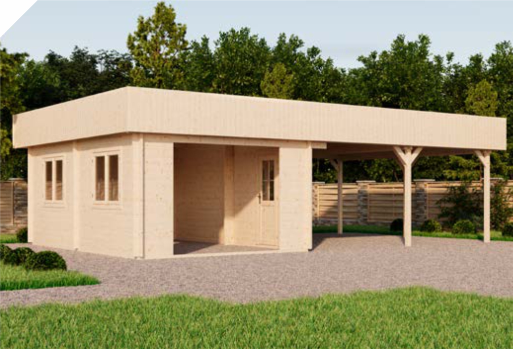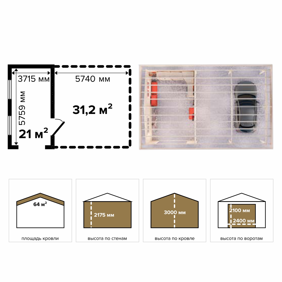 Гараж 52 Дуэт с навесом (Стандарт) - брус 44 мм