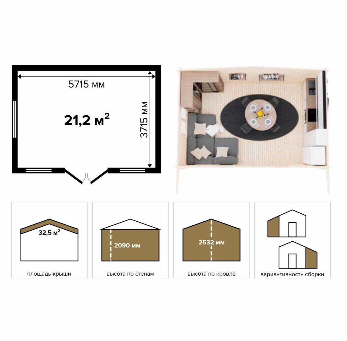 Садовый дом 21 (Комфорт) - брус 44 мм