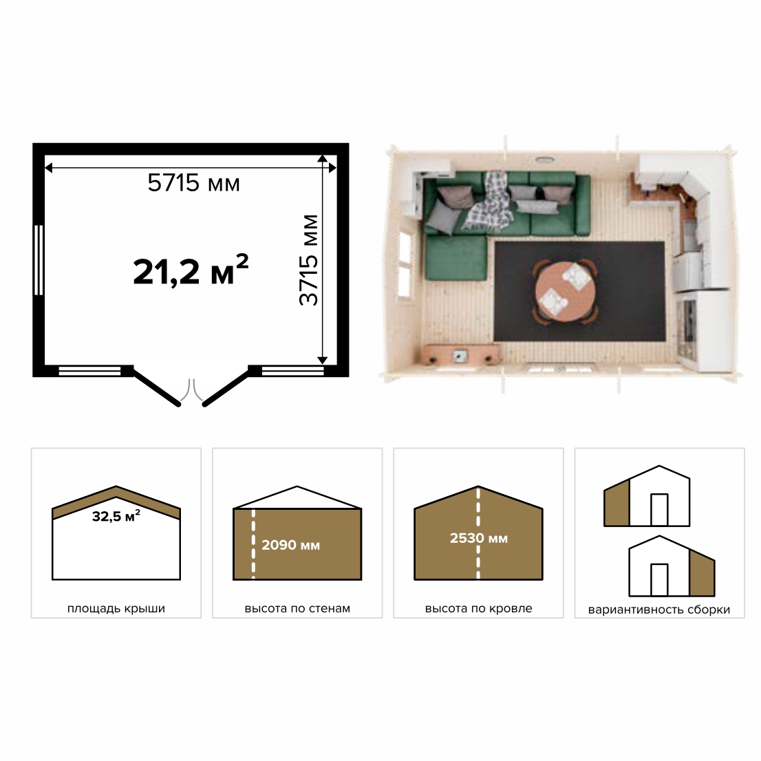 Садовый дом 21 Соло (Стандарт) – брус 44 мм