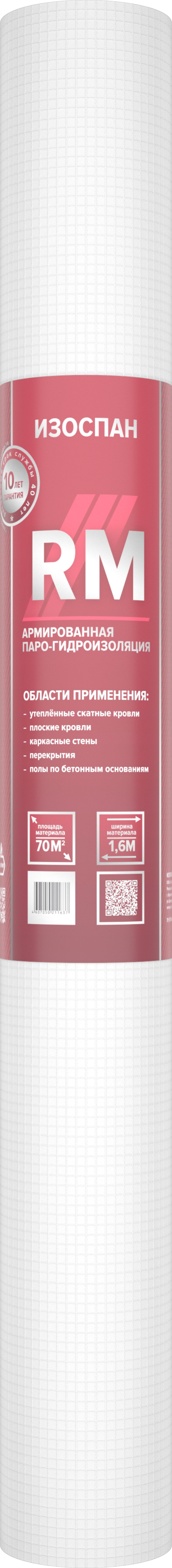 Высокопрочная паро-гидроизоляция Изоспан RM состоит из полипропиленовой плёнки и армирующей сетки. Несмотря на то, что Изоспан RM паропроницаемый материал, он также создает надежный гидроизоляционный слой, препятствующий вредоносному воздействию воды на материалы (утеплитель и др.). Благодаря этому увеличивается срок эксплуатации материалов и конструктивных элементов.