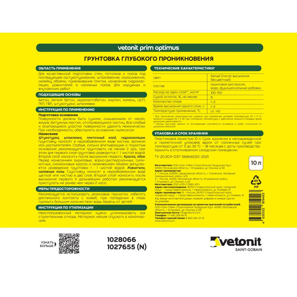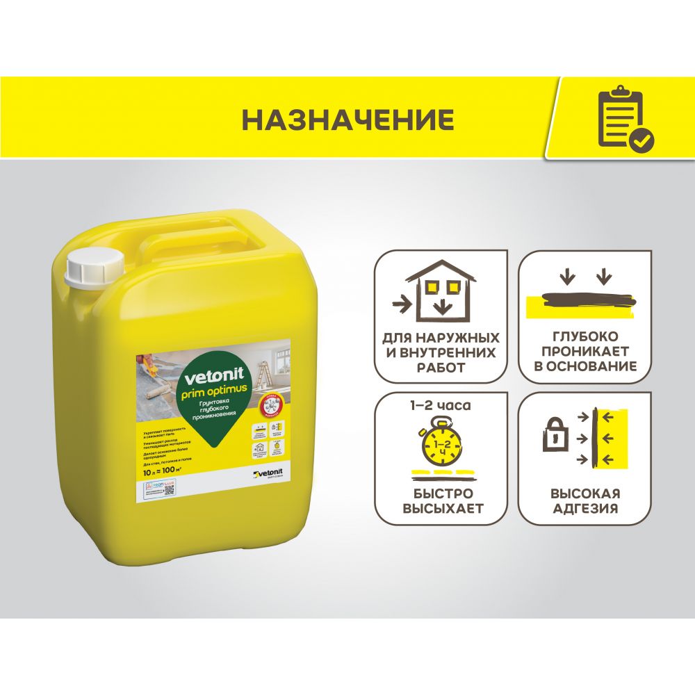 Грунтовка ветонит прим оптимус 10 л (60шт/палл)