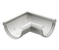 Угловой элемент 90 гр. соединяет желоба при прямых углах поворота карниза. Перенаправляет поток воды. Такой элемент часто используется на вальмовых крышах или на специальных архитектурных выступах.