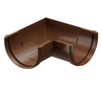 Угловой элемент 90 гр. соединяет желоба при прямых углах поворота карниза. Перенаправляет поток воды. Такой элемент часто используется на вальмовых крышах или на специальных архитектурных выступах.