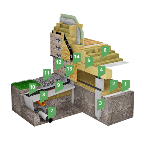 Система применяется в коттеджном и малоэтажном строительстве, применима для легких домов каркасного или деревянного типа без подвалов и цокольных помещений.