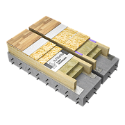 Система тепло-, звукоизоляции межэтажных перекрытий с применением плит из каменной ваты в конструкции пола по деревянным лагам с основанием из железобетонной плиты