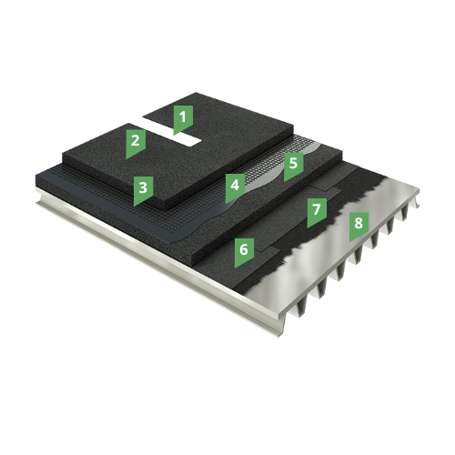 ДОРОГА МОСТ С Металл — применяется для устройства гидроизоляции мостовых сооружений с пролетной частью из стальной ортотропной плиты с укладкой асфальтобетона на гидроизоляцию.