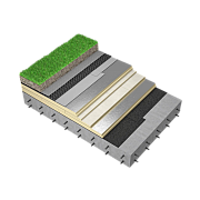 Система эксплуатируемой крыши по железобетонному основанию с кровельным ковром из полимерной мембраны и защитным покрытием из грунта с зелёными насаждениями