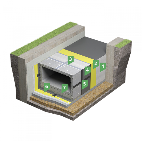 Однослойная гидроизоляционная система для защиты несущих конструкций тоннелей неглубокого заложения, выполняемых из монолитного железобетона, от негативного воздействия наземных вод атмосферного происхождения, капиллярной воды, сезонной верховодки, а также временного и постоянного воздействия гидростатического напора подземных вод. В качестве гидроизоляционного материала применяется полимерная мембрана LOGICBASE V-SL с сигнальным слоем, изготовленная на основе пластифицированного поливинилхлорида (ПВХ).