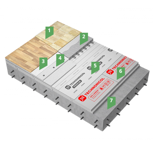 Система ПОЛ Стандарт применяется для звуко- и теплоизоляции перекрытий, жилых, общественных, административных зданий.