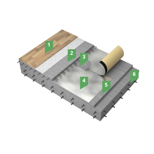 Применение Звукоизоляции пола в системе позволяет сохранить высоту этажа благодаря небольшой толщине материала, а также не требует применения специальных навыков или сложного технического оборудования в процессе монтажа.